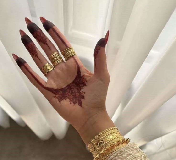 Instead of covering your palms, why not make a statement with detailed backhand designs? These designs focus on extending patterns from fingers to wrists, creating an eye-catching effect that’s totally Pinterest-worthy.