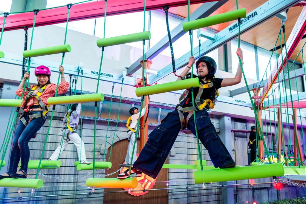 Enjoy a high-energy adventure with Canopy Trail, where balance, coordination, and strength are important to navigate the skyline obstacle rope course. Meanwhile, Tangle Drop involves a thrilling drop down a spiral slide, followed by a climb up a vertical tangle net to get back up. For the young ones aged 3 – 10, the Little Island soft play area provides safe and imaginative play through padded climbing structures, slides, ball pits, and more, while encouraging motor skill development and social interaction.