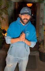 For a casual dinner outing, Kartik kept things minimal yet trendy. He paired ripped light blue denim with a simple blue sweatshirt, topping it off with a denim cap. This understated look is perfect for those low-key winter evenings where you still want to turn heads without trying too hard.
