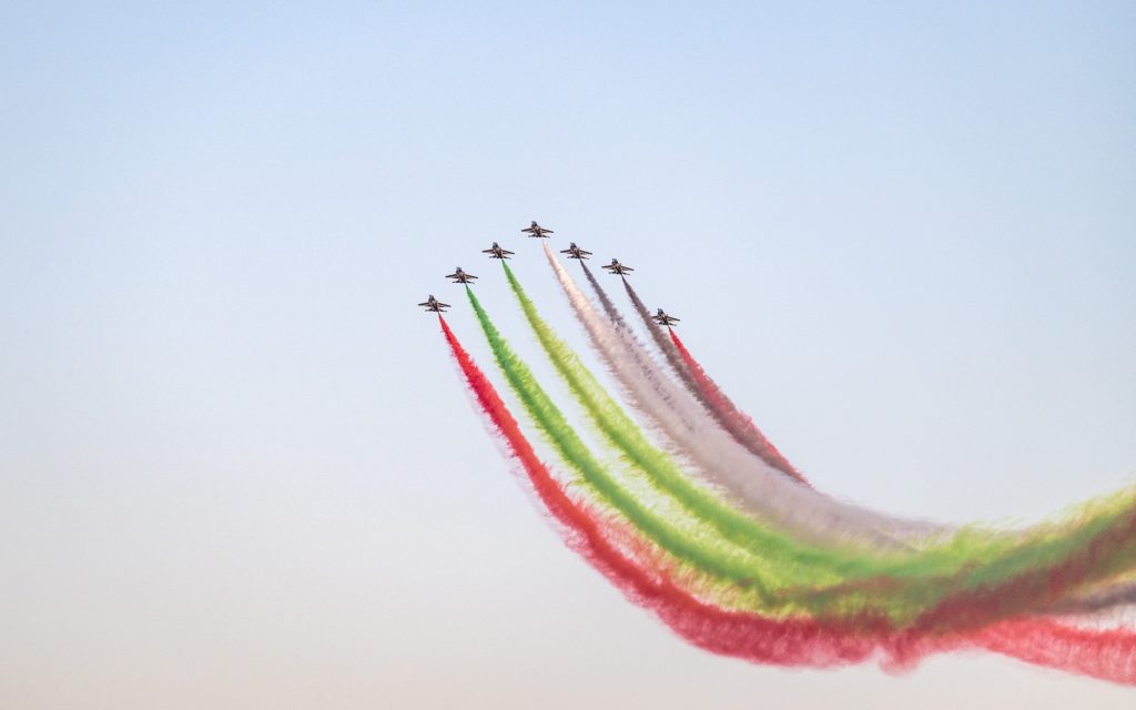 Their Highnesses also witnessed the festival’s opening ceremony, which featured an innovative sound, light, laser, and drone show, culminating in a fireworks display that lit up the skies over the Liwa desert. The opening day featured a special performance by the UAE’s official aerobatic team, Al Fursan.