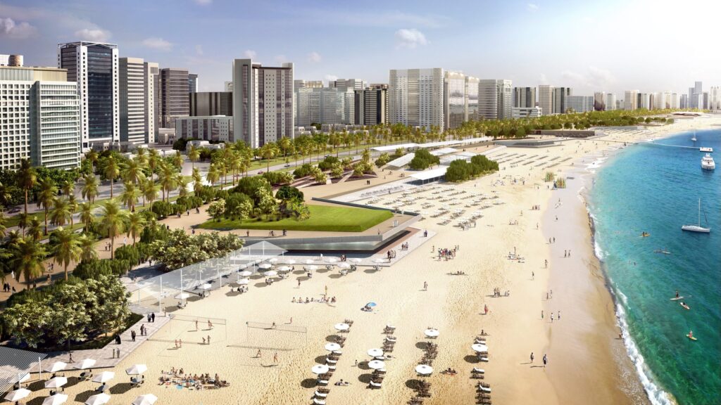 Stretching along the Abu Dhabi coastline, Corniche Beach is a popular spot for both locals and tourists. The beautifully landscaped promenade, along with its clear blue waters, makes it one of the most pristine urban beaches in the UAE. The beach offers a variety of amenities such as cycling paths, playgrounds, and picnic areas. The nearby cafes and restaurants also offer an incredible view of the Arabian Gulf, making it a perfect place for sunset dining.