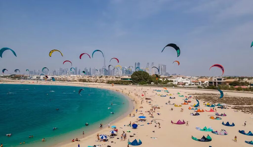 Kite Beach in Dubai is a hotspot for adventure enthusiasts. From kite surfing and paddleboarding to beach volleyball and jogging trails, it’s a dynamic destination with an energetic vibe. The beachside food trucks and cafés add to its charm, making it a favorite among locals and tourists. The distinct kite-surfing scene, with colorful kites flying across the water, creates an exciting and lively ambiance. It’s also the ideal location for those who want to be active while soaking in the sun, making it the ultimate spot for both relaxation and adventure.