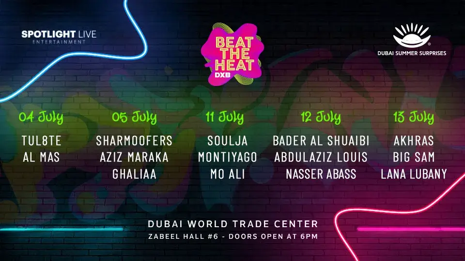 There are multiple concerts lined one after the other for everyone to let loose and be entertained, from artists like Jazziyat ft. Banah, Miami Band, to bringing Beat the Heat DXB concert series back, later followed by regional giants like Adonis and Shreya Goshal